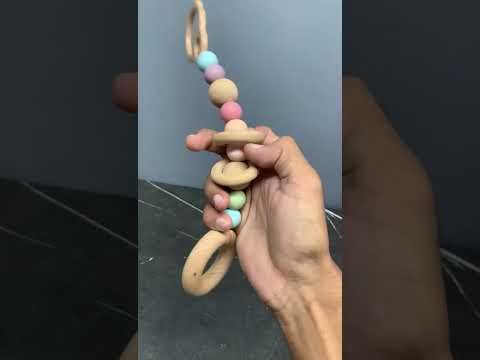 - It features a combination of wooden rings, beads, designed for babies to grasp, shake, and chew.