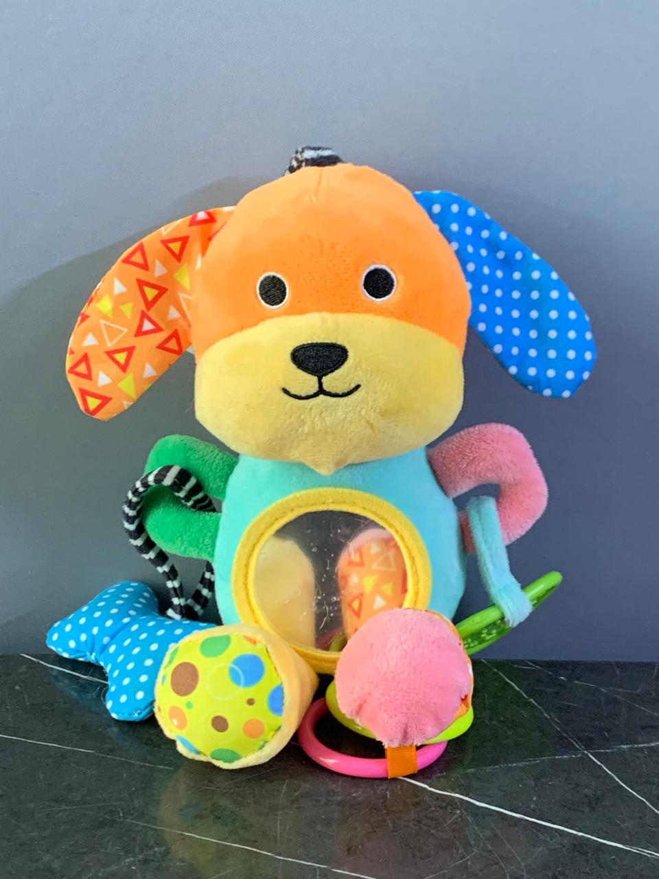 - Includes a mirror, rattle, squeaker, crinkle textures, and BPA-free teethers.