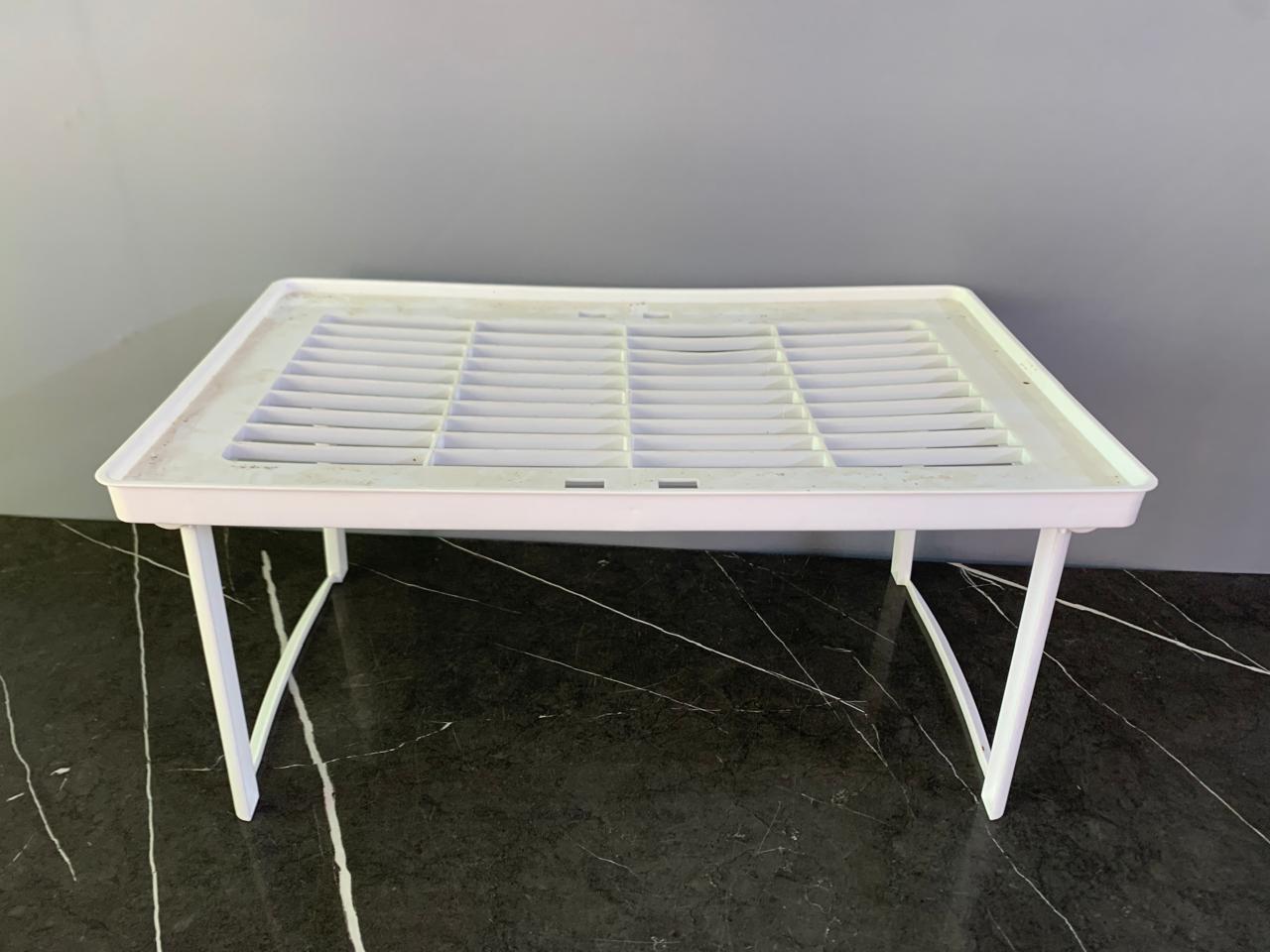 - Kitchen shelving rack folds flat for compact storage when not in use.