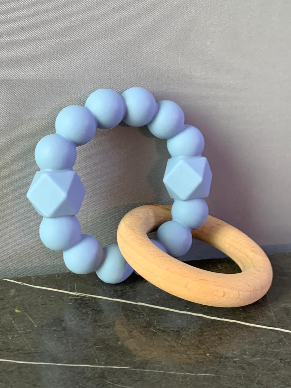 - Offering your teething baby the best of both worlds, oumcombines a beech wood teething ring with a textured silicone teething ring.