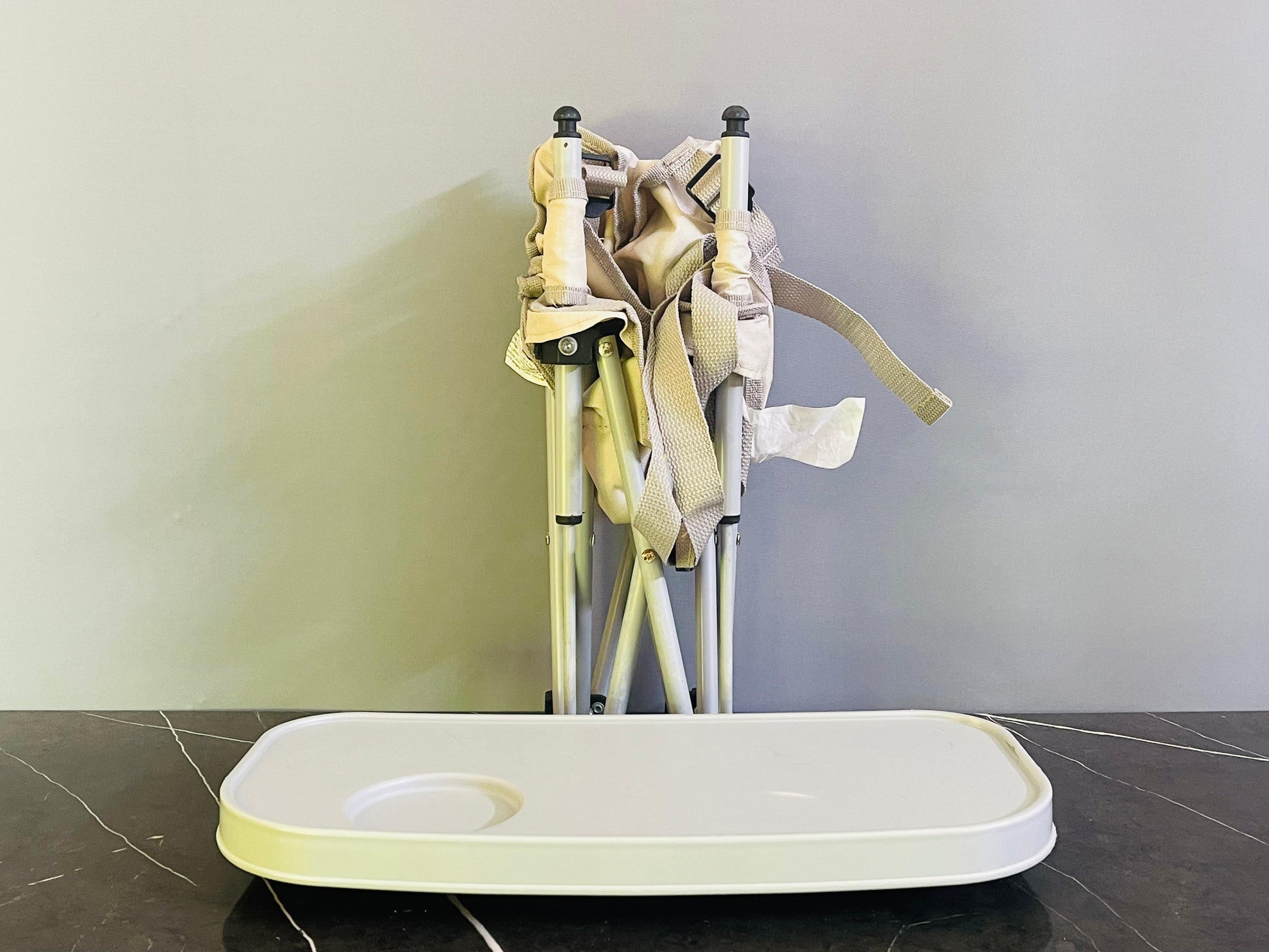 - Includes a detachable table with a cup holder and removable chair attachment straps.