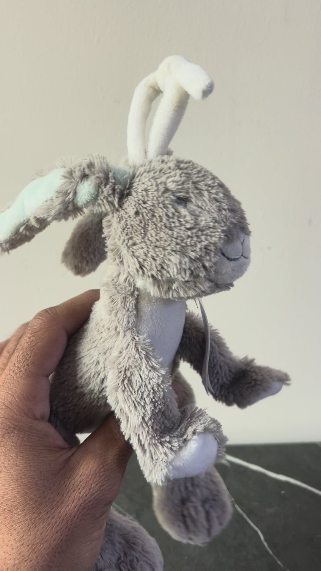- Rabbit character in a soft, textured plush material.