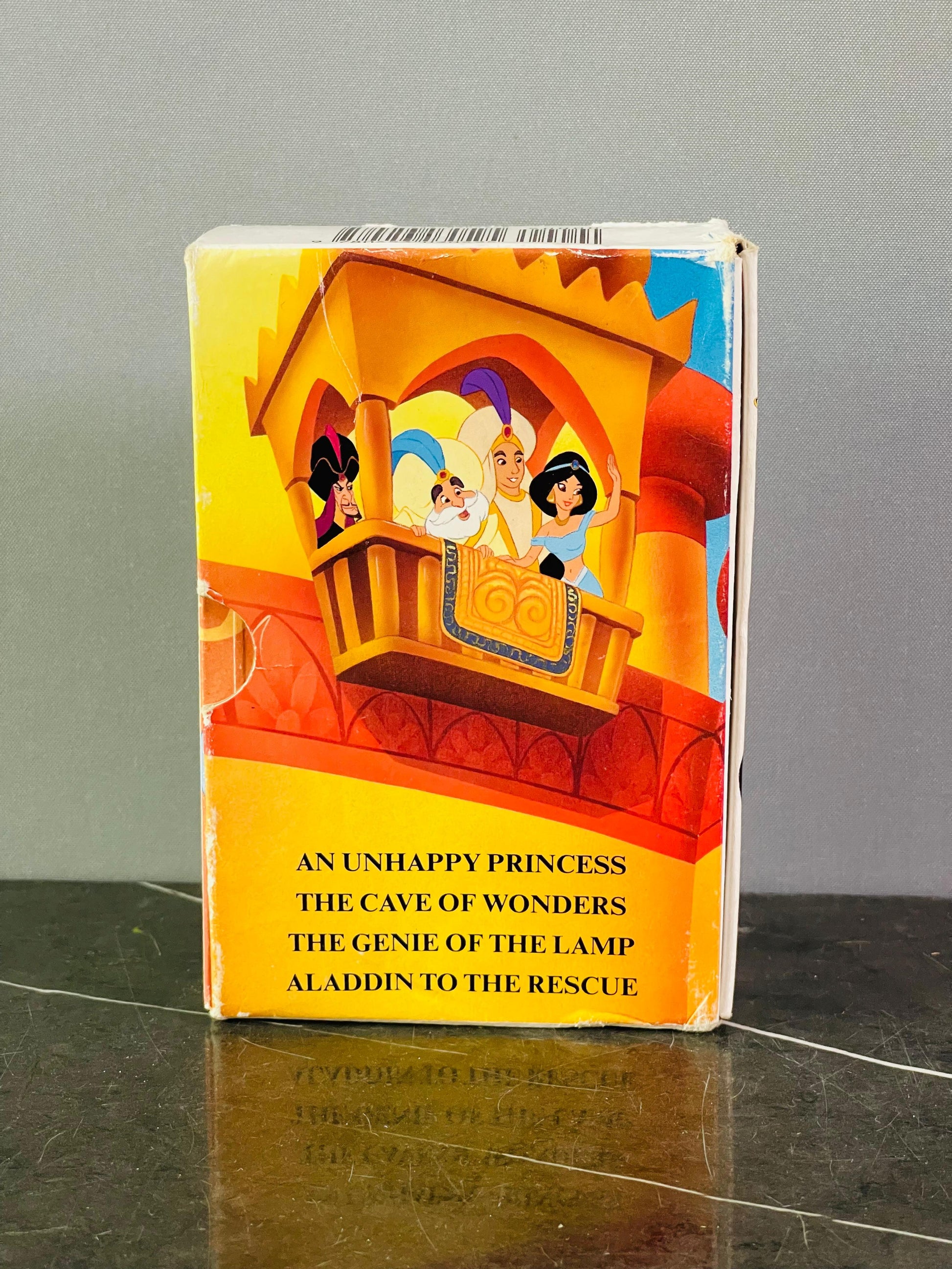 - It is a collection of four small board books for children, based on the classic Disney animated film Aladdin.